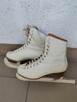 Chcę sprzedać.. w bardzo dobrym stanie łyżwy damskie do jazdy figurowej na lodzie. Skórzane buty lakierowane na biało o ...