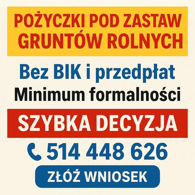 Pożyczka bez BIK! Udzielamy pożyczek pod zastaw: - nieruchomości - gruntów rolnych - działek ...